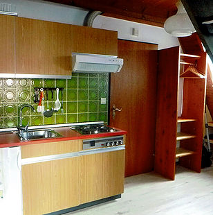 Wohnzimmer (inkl. 2 Schrankbetten), Kochzeile, Essplatz,