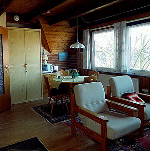 Wohnzimmer (inkl. 2 Schrankbetten), Küchenzeile, Essplatz,